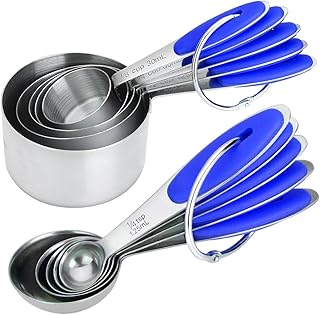 Bekith Ensemble de tasses et cuillères à mesurer en acier inoxydable 10 pièces Avec poignée en silicone pour la cuisine