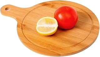 Planche à découper en bambou, plateau à pizza de 25 cm, planche à découper avec poignée, planche à découper ronde en bambou pour viande, légumes, fruits