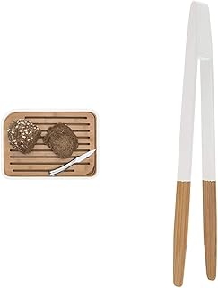 Pebbly - NBA102 - Grande Planche à Pain L en Bambou Blanche avec Grille Amovible - Matériau Naturel et résistant & NBA031 Pince à Toast en Bambou - Blanc, Bois, Non aimantée-Blanche