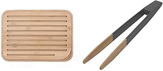 Pebbly - NBA037 - Grande Planche à Pain L en Bambou sans Couleur avec Grille Amovible - Matériau Naturel et résistant & NBA032 Pince à Toast Noir, Bambou, Non aimantée-Anthracite, 24