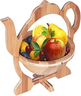 Barrageon Bambou Corbeille à Fruits Pliant Bol Pliable Panier Oeuf Pain Planche à Découper Bois Cuisine Résistant Chaleur Antidérapant Tapis de Pot Cadeau Maison Brun Naturel (Design Théière)