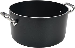 Pentole Agnelli - Alblack - Casserole Haute en Aluminium, épaisseur 3 mm, avec 2 poignées en Acier Inoxydable 24 cm Noir
