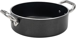 Pentole Agnelli Alblack Casserole basse, en aluminium, épaisseur 5 mm, avec 2 poignées en acier inoxydable 28 cm Noir