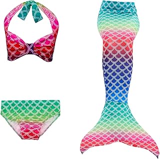 Filles Queues de Sirène Maillots de Bain Costume Cosplay, 3 Pièces Maillot de Bain Princesse Queue de Sirène Enfants pour Nager Cosplay Fête