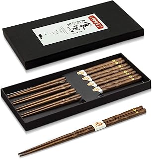 AOOSY 5 Paires de Baguettes japonaises, Baguettes de Parttern en Bois Naturel réutilisable avec Une boîte Noire Faite Main pour Nouilles à Sushi (Bois Rouge)