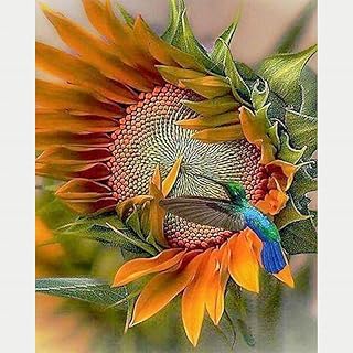 XDXART Kit de broderie diamant 5D à faire soi-même, motif fleurs, lever de soleil, colibri et tournesol, pour décoration de salon, 20 x 25 cm