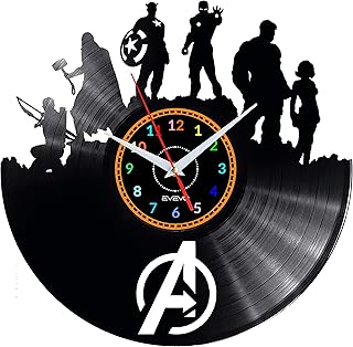 EVEVO Avengers Horloges Murales Disque Vinyle Disques Vinyliques Horloges Murales Vinyle Record Mur l'horloge Créatif Classique Accueil Décor Musical Avengers