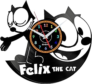 EVEVO Felix The Cat Horloges Murales Disque Vinyle Disques Vinyliques Horloges Murales Vinyle Record Mur l'horloge Créatif Classique Accueil Décor Musical Felix The Cat