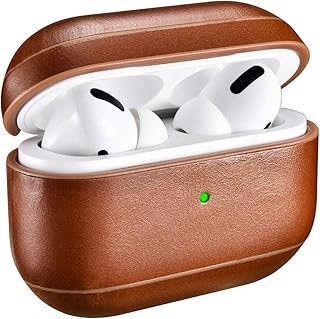 ICARER Coque AirPods Pro, Étui Housse en Cuir Véritable Ultra Mince Portable Antichoc Protection Housse Etui Coque pour Apple AirPods Pro AirPods 3 Earphones Case (Témoin LED Visible)-Marron