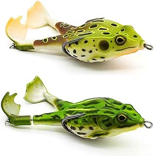 2 Pièces Leurres Grenouille,Appât De Pêche À La Grenouille Soft Frog Lure Bait Leurres De Pêche en Silicone Souple avec des Hameçons Triples Appât Artificiel 3D Appât Souple À 360 °Double Hélice
