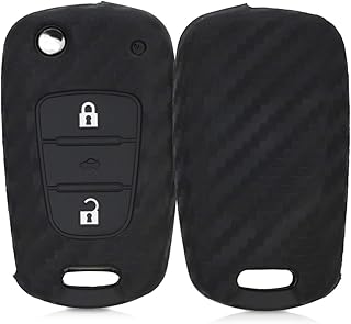 kwmobile Accessoire Clé de Voiture Compatible avec Kia Smartkey 3-Bouton - Coque de Protection Souple en Silicone - Carbone Noir