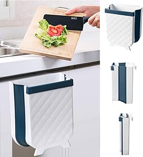 runnerequipment Poubelle Pliante Suspendue, Poubelle Pliable pour Porte d'armoire de Cuisine, Petite Poubelle Pliable sous l'évier, Poubelle Pliante Murale, Plastique, avec Sacs à ordures