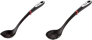 Tefal K2060514 Ingenio Cuillère ustensile de Cuisine Noir résistant sans bisphénol A & K2060214 Ingenio Cuillère à Pâtes ustensile de Cuisine Noir résistant sans bisphénol A avec Insert Silicone