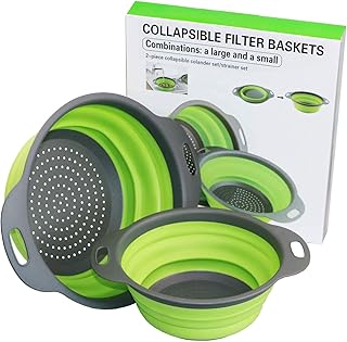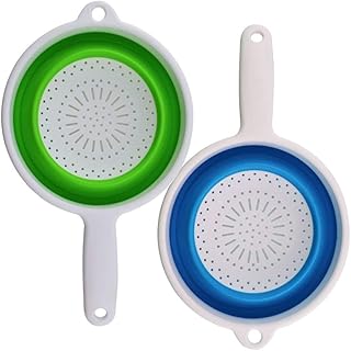 Colosun Lot de 2 passoires pliables, paniers filtrants portables et pliables en caoutchouc pour cuisine, camping, égoutter les aliments, fruits et légumes