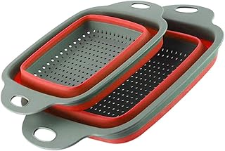 ddLUCK Lot de 2 passoires de cuisine pliables en silicone avec poignées, économiseur d'espace pour égoutter les pâtes, les légumes (vert et rouge)