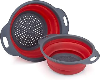 Phoetya Lot de 2 passoires pliables avec poignée, convient pour égoutter les pâtes, légumes, fruits, haricots (rouge)